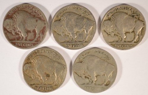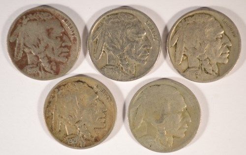 5 DIFFERENT BUFFALO NICKELS ( 16-D,18,19,20,21) AG-VF