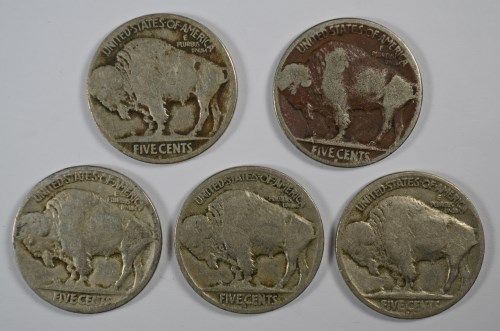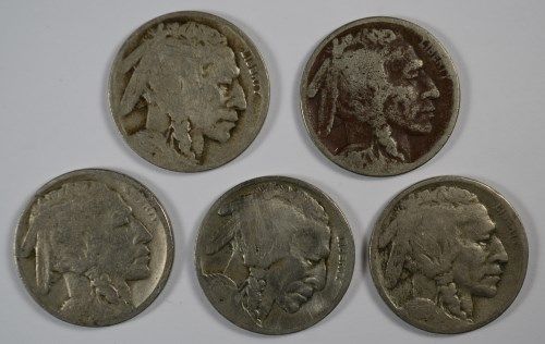 5 DIFFERENT BUFFALO NICKELS (17,17-D,17-S,18-D,19-D) GOODS