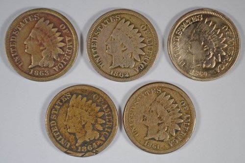 5- DIFFERENT DATED INDIAN HEAD CENTS (1860,1861,1862,1863,1864 CN) GOOD