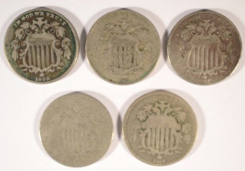 5 DIFFERENT SHIELD NICKELS ( 66,67,68,74,82) GOOD-FINE