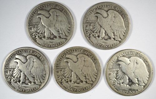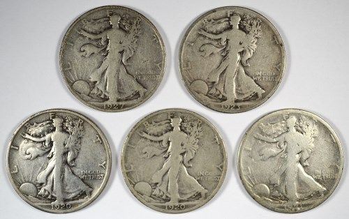 5 DIFFERENT WALKING LIBERTY HALF DOLLARS ( 20-D,20-S,21-S,23-S,27-S) AG/VG