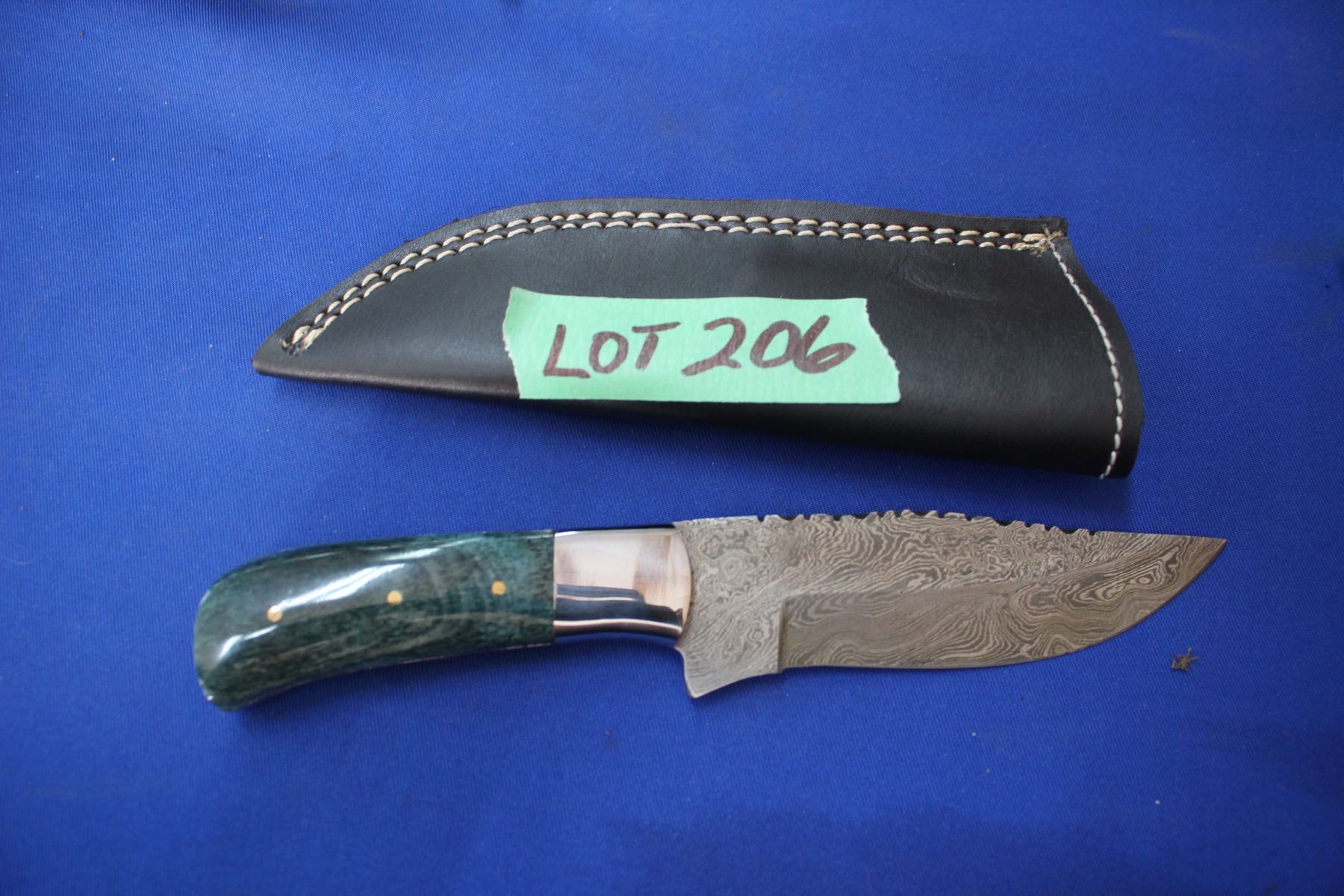 5" Damascus Blade Knife w/Died Camel Bone Handle - Green