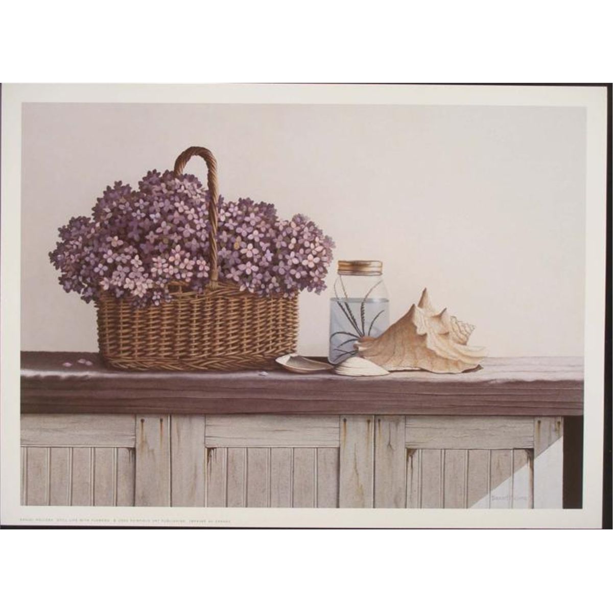 Sit back, relax, and enjoy what mother nature has given us; her beauty and elogance... * Artist: Dan Pollera Medium: Print on paper Signature: Signed in pl Date: 2001 Condition: Excellent This lot includes the following 5 pieces: * Title: Still Life with Shells Image Size: 11" x 15" Paper Size: 10" x 14"Title: Still Life with the Flowers Image Size: 11" x 15" Paper Size: 10" x 14"Title: Sunset Beach Image Size: 11" x 14" Paper Size: 12" x 15"Title: The Hamlet Image Size: 11" x 14" Paper Size: 12" x 15"Title: Last Light Image Size: 11" x 14" Paper Size: 12" x 15"Bibliography * Using oils, making a warm palette on board and drawing from life experiences, he lures the viewers with his crisp photographic quality and magical realism. Daniel was born and raisecd in Long Island and lives on the water in one of its coastal towns. Much of his imagery comes from these surroundings and that's helped to make him one of the most respected and successful painters of coastal landscapes. * From website: http://www.danielpollera.com/ *