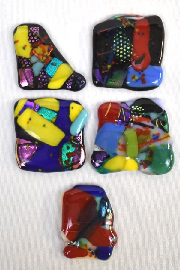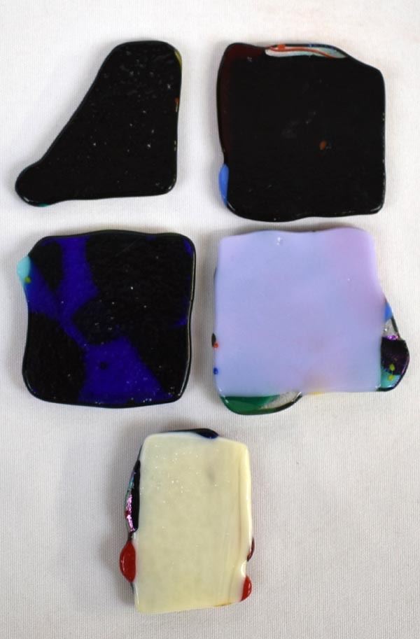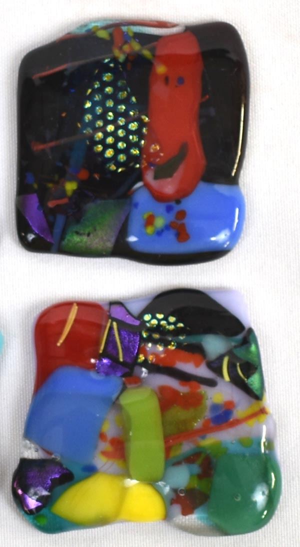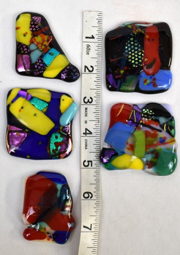5 Dichroic Glass Tiles, measure 2'' x 2.25''
