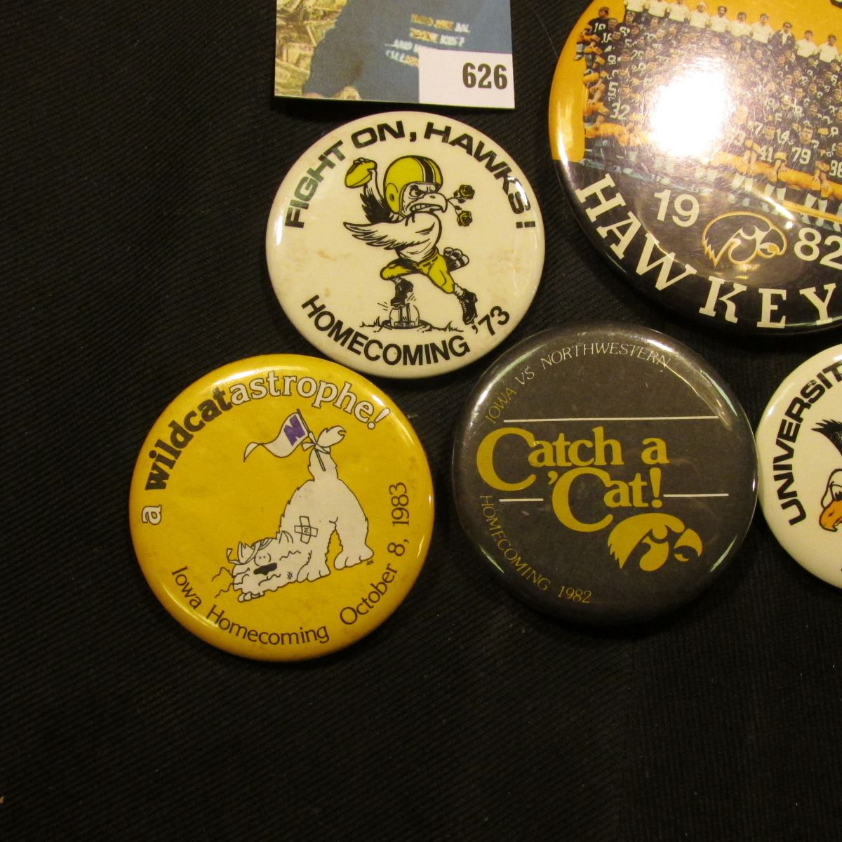 (5) Different 1970-80 Hawkeye Homecoming Pin-backs.