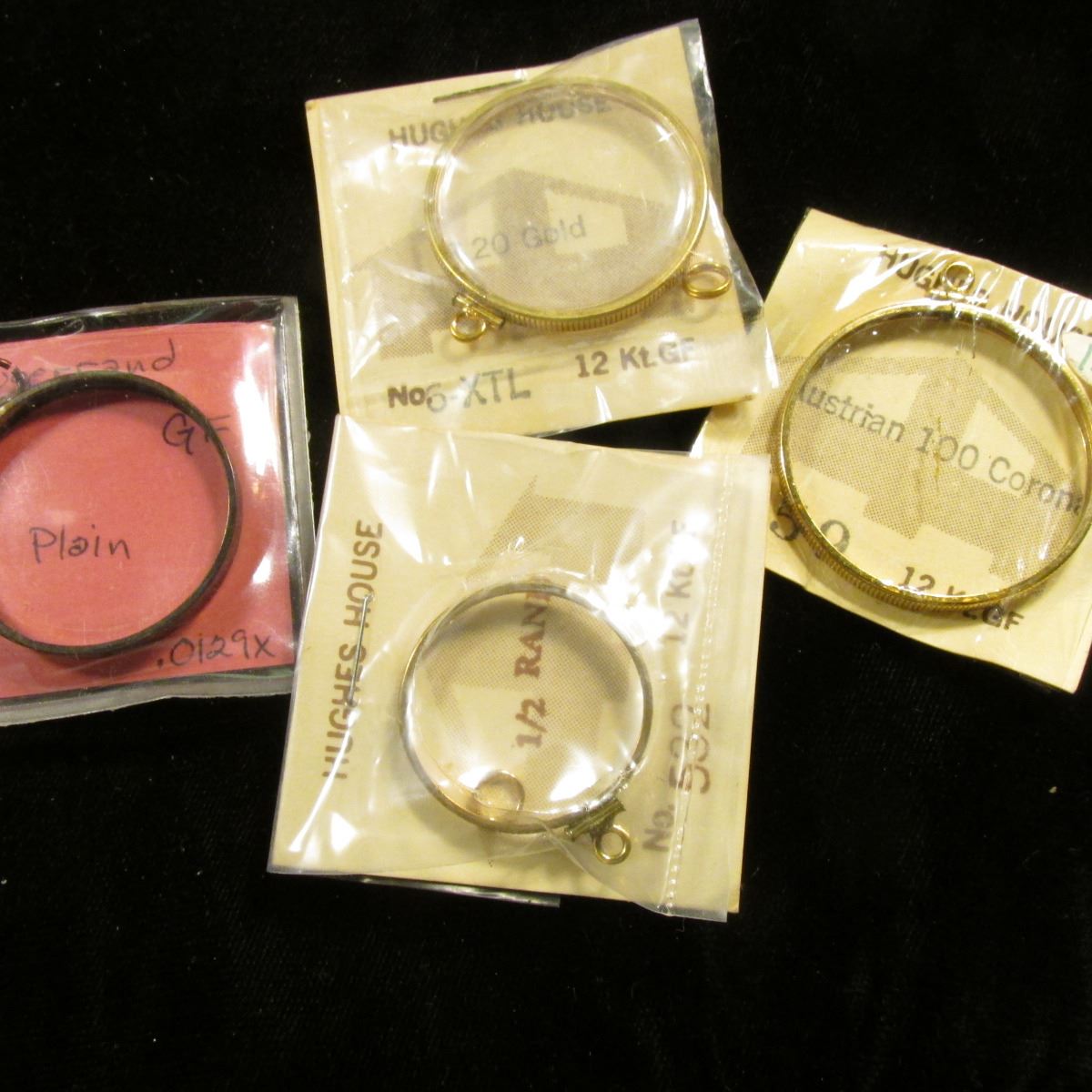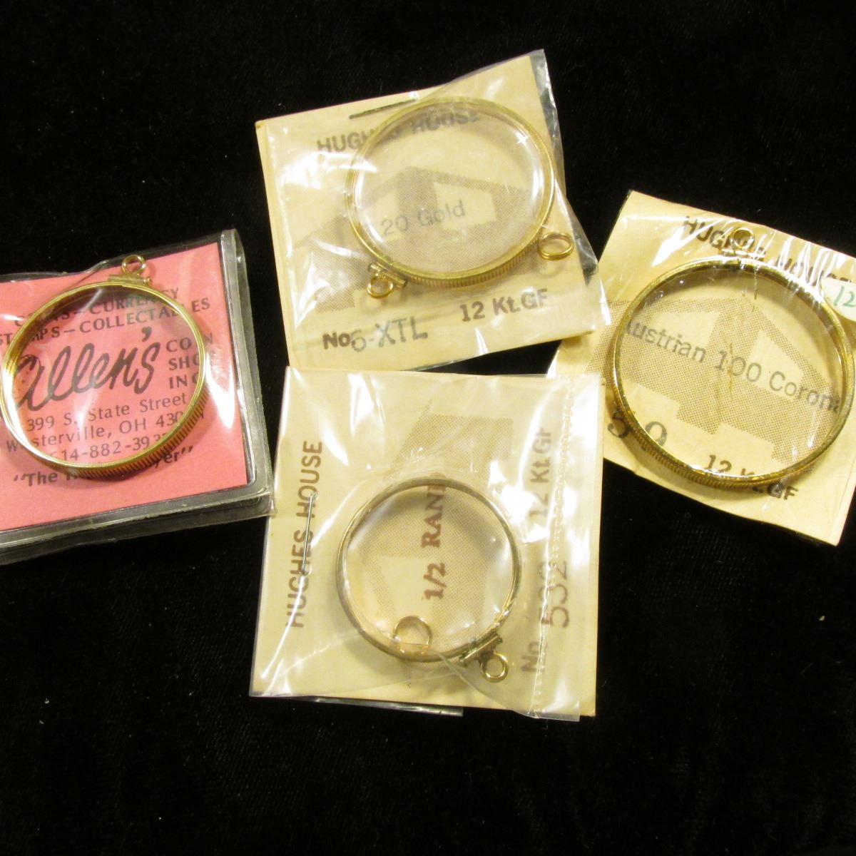 (5) Different Gold-Filled Bezels for Gold Pieces, including 1/2 & One Krugerrand, Austrian 100 Coron
