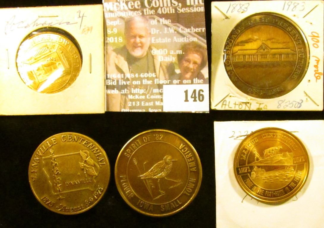 (5) Different Iowa Centennial Medals, all brass. Includes Alton, Pocahontas, Lynnville, Plover, & Ma