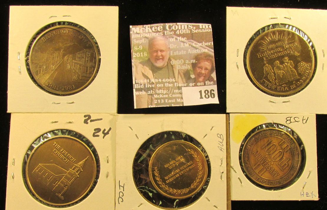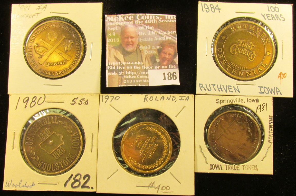 (5) Different Iowa Centennial Medals, all brass. Includes Bancroft, Springville, Woolstock, Roland,
