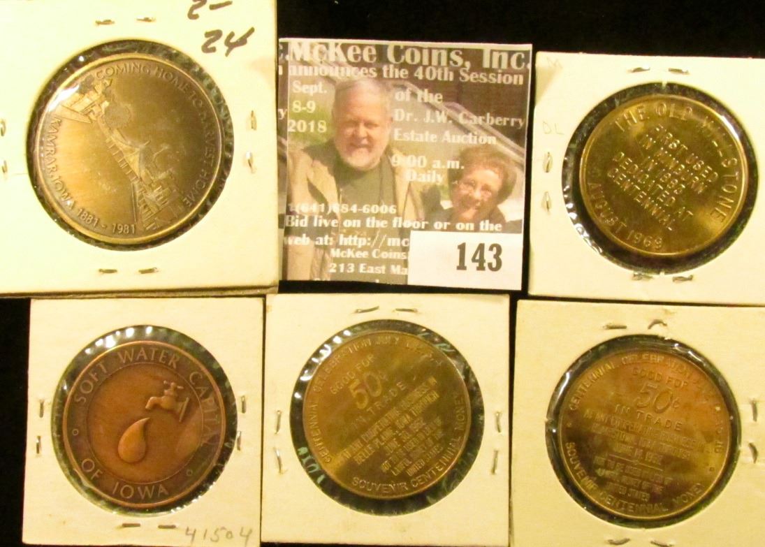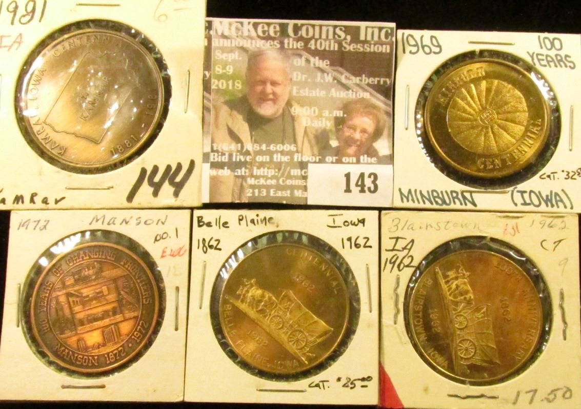 (5) Different Iowa Centennial Medals, all brass. Includes Blairstown, Belle Plaine, Manson, Minburn,
