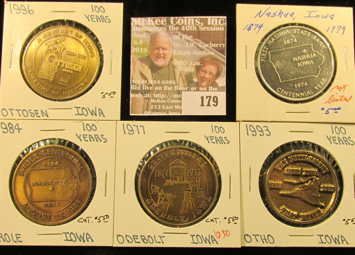 (5) Different Iowa Centennial Medals, all brass. Includes Prole, Ottosen, Otho, Odebolt, & Nashua, I