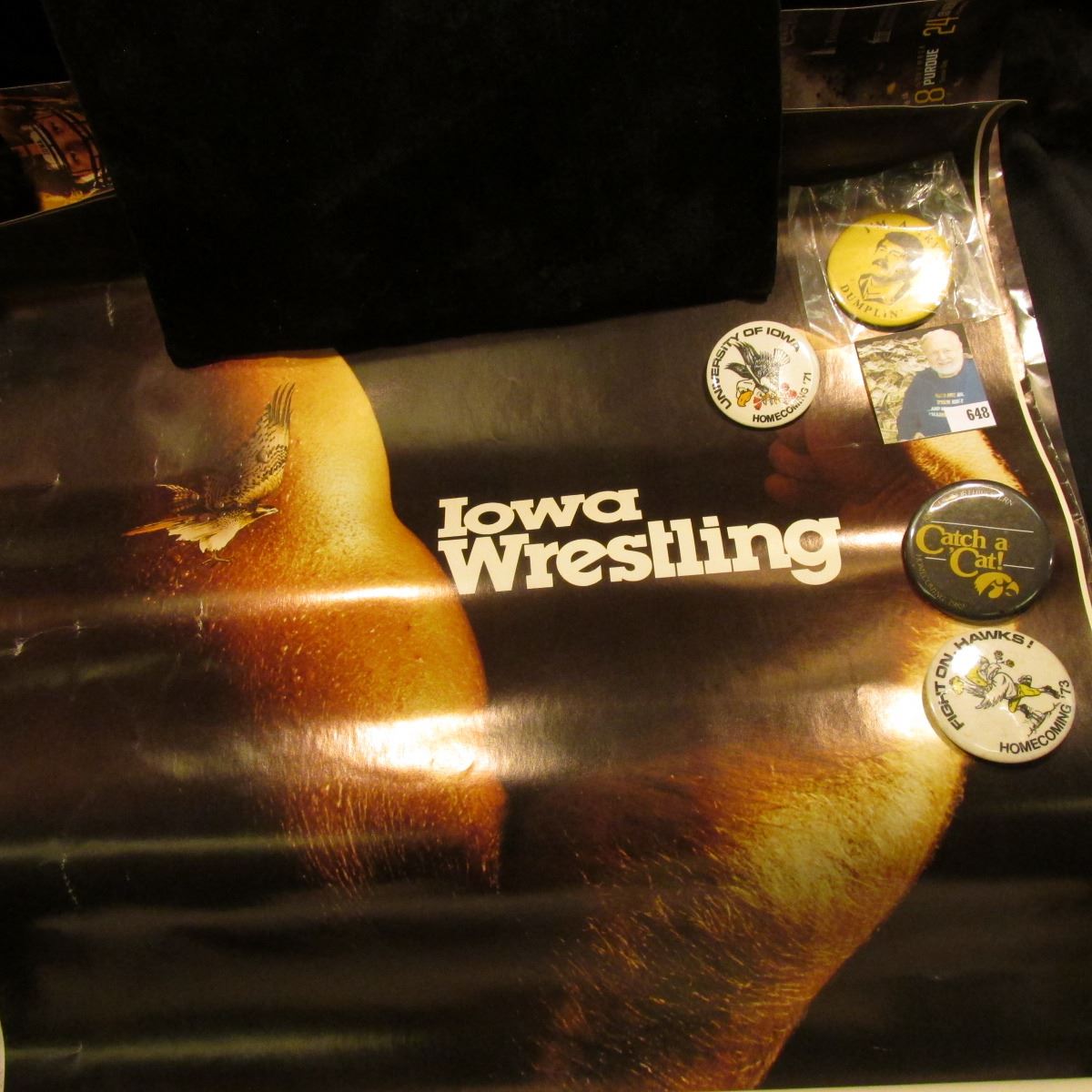 (5) Different Iowa Hawkeye Posters; & (4) Different 1970-80 era Hawkeyes Pinbacks.