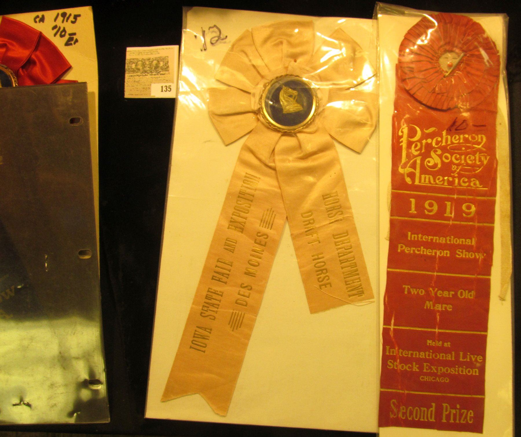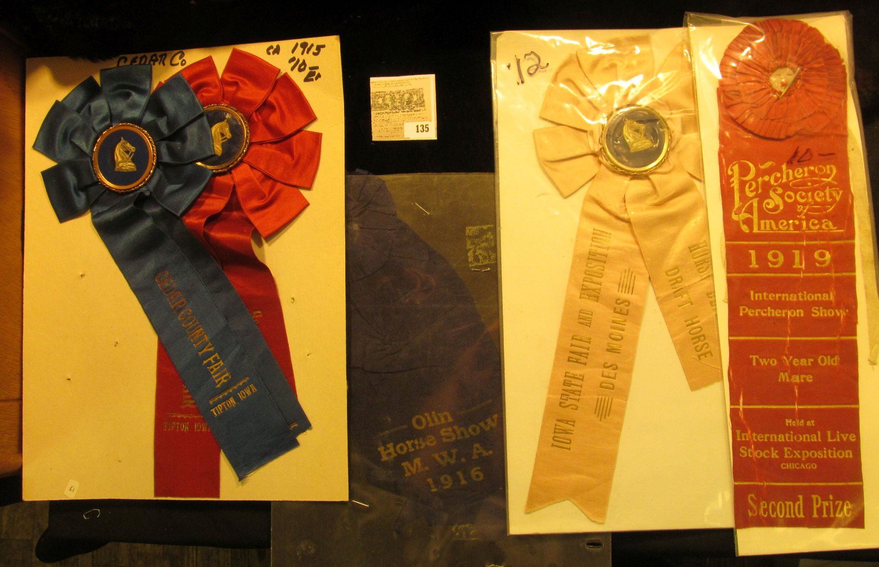 (5) Different early 1900 "Iowa State Fair" Equestrian related Award Ribbons.