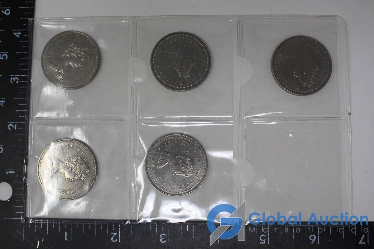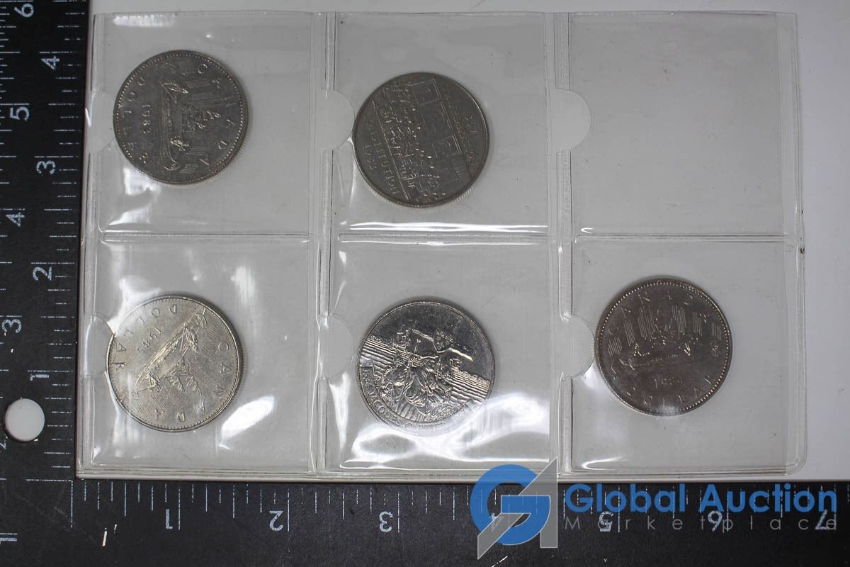 (5) Dollar Coins (Constitution, Jacques Cartier)