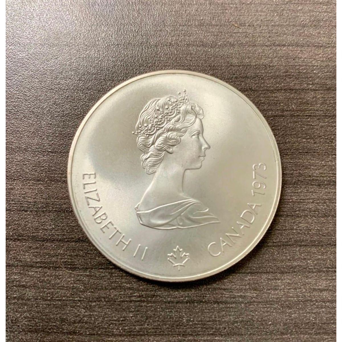 1976 Olympics, Montreal Obverse Lettering: ELIZABETH II CANADA 1973 Engraver: Arnold Machin Reverse Lettering: Olympiade XXI Montreal Olympiad 1976 5 Dollars Engraver: Georges Huel Specifications Country: Canada Type: Non-circulating coin Year: 1973 Value: 5 Dollars (5 CAD) Currency: Canadian dollar (1858-date) Composition: Silver (.925) Weight: 24.3 g Diameter: 38 mm Shape: Round