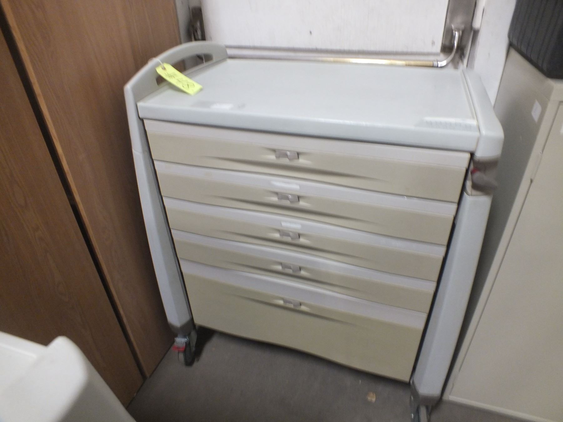 5 Drawer Storage Cart On Wheels, 35"l 21"w 40"h...sold as is / where is...used
