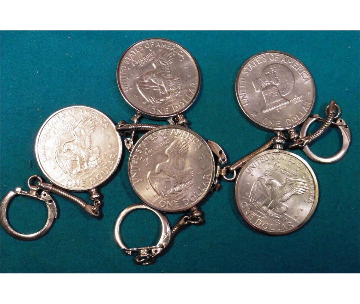 (5) Eisenhower Dollars in Bezels and Key Chains.
