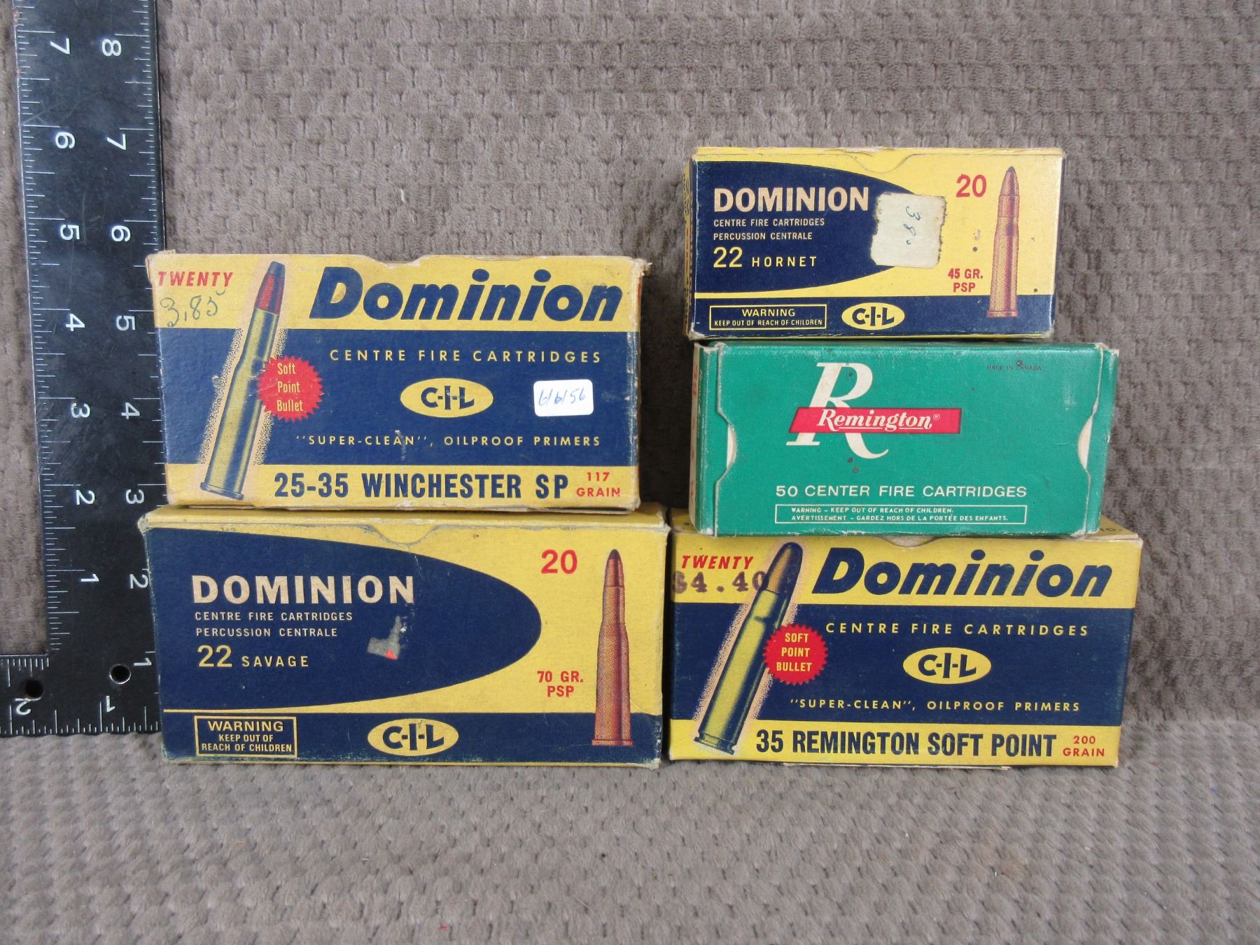 5 Empty Cartridge Boxes - 25-35, 22 Savage, 38 S&W, 22 Hornet, 35 Rem