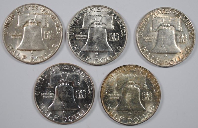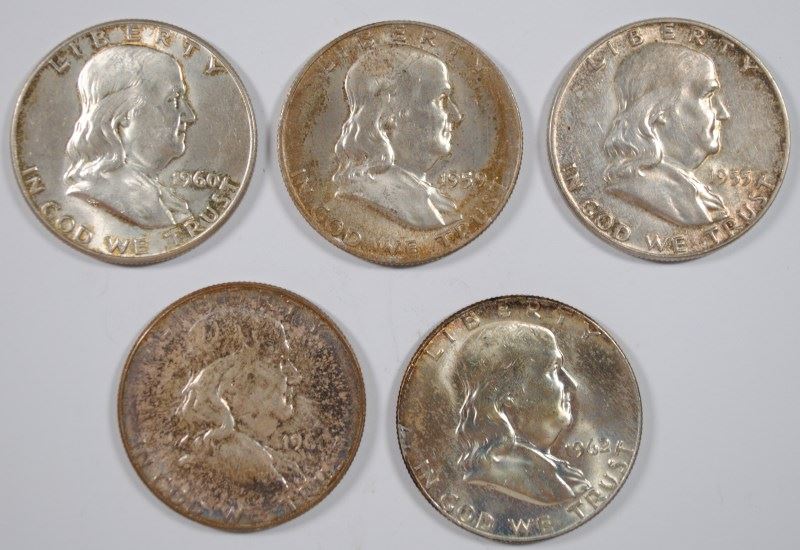 (5) FRANKLIN HALF DOLLARS (1955, 1959, 1960, 1961, 1962-D)