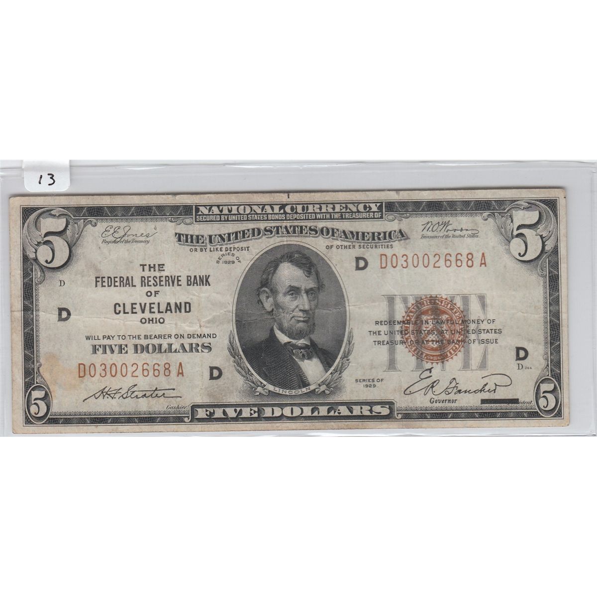 $5 FRBN 1929 BROWN SEAL CLEVELAND