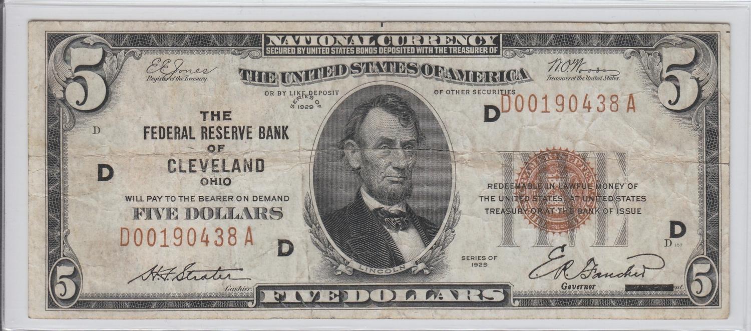 $5 FRBN **CLEVELAND** 1929 BROWN SEAL