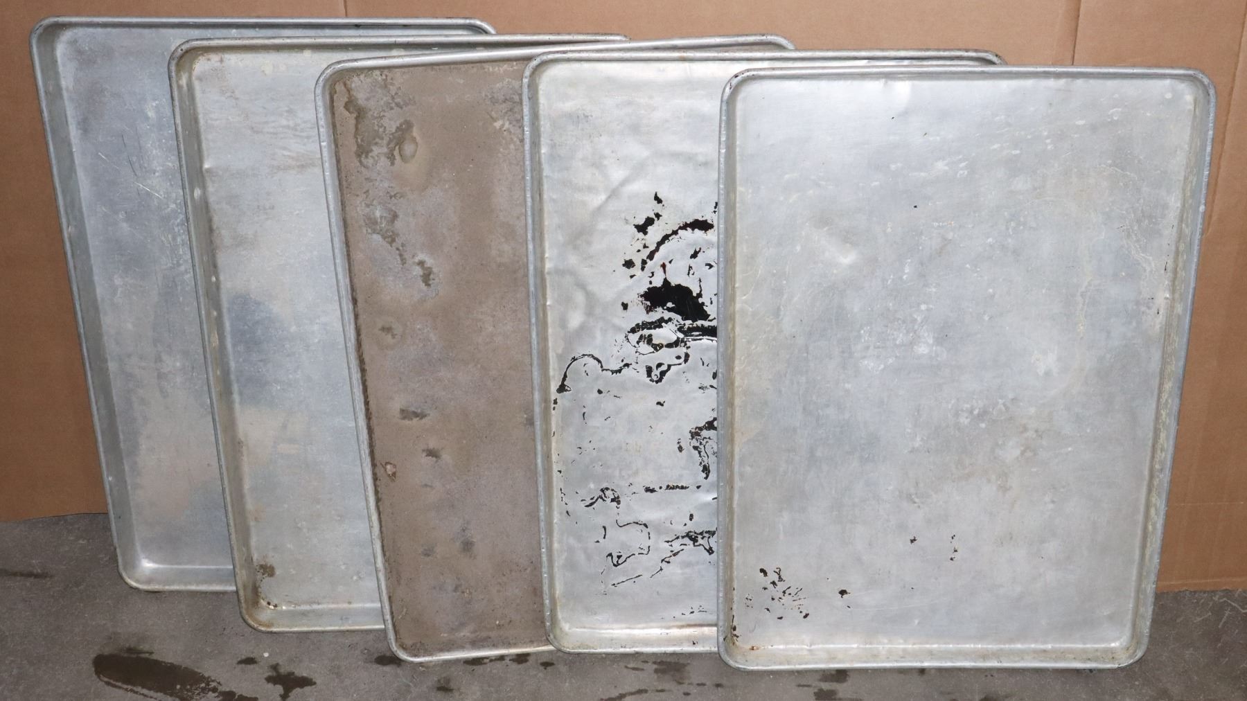 5 FULL SIZE BAKING PANS (APPROX 26" X 18")