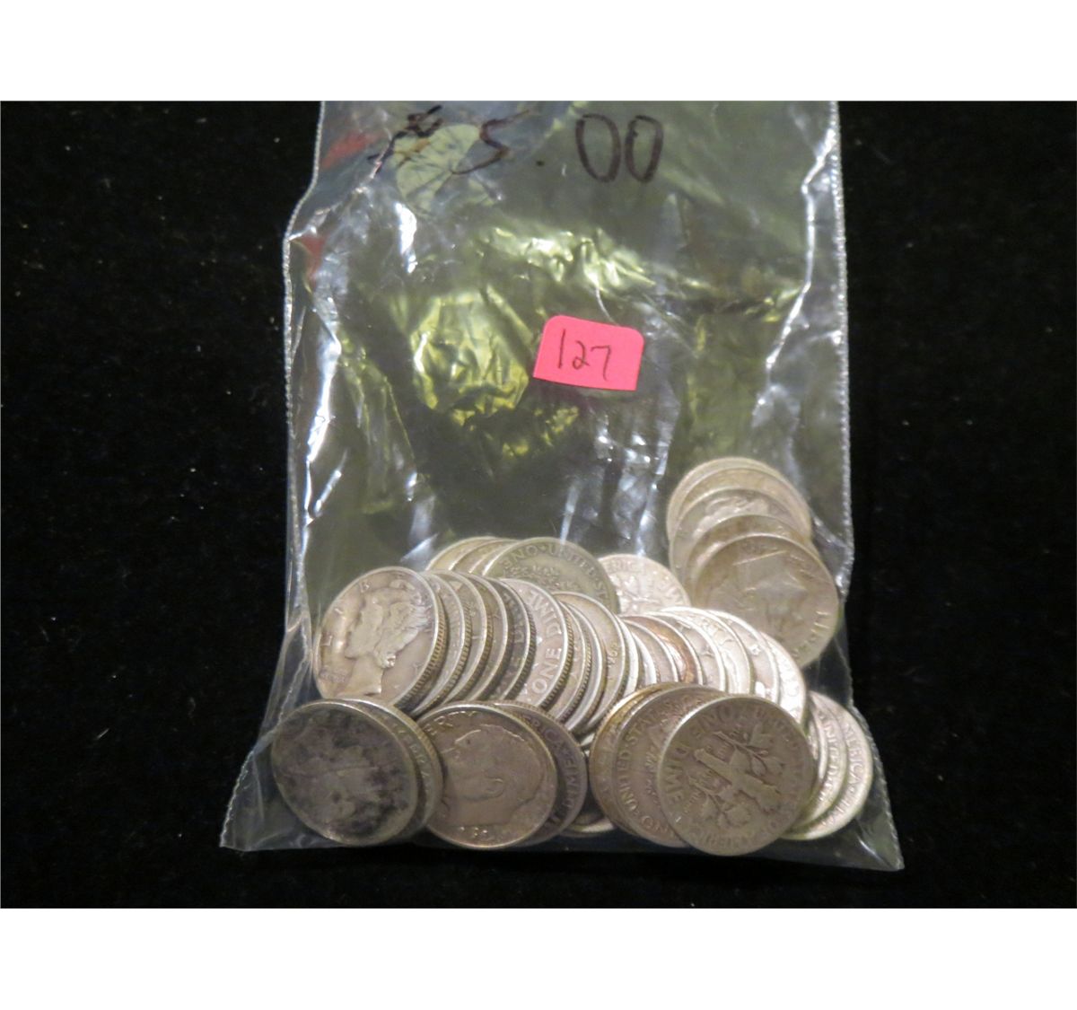 $5 Face of 90% US Silver Dimes - 50 Coins