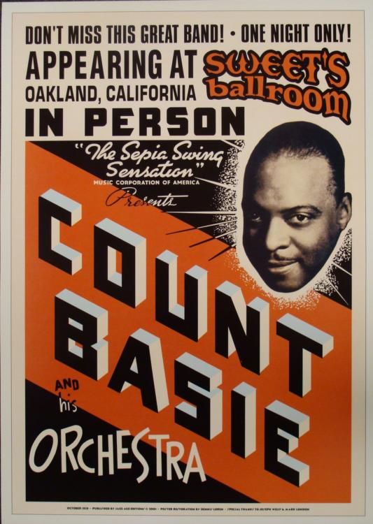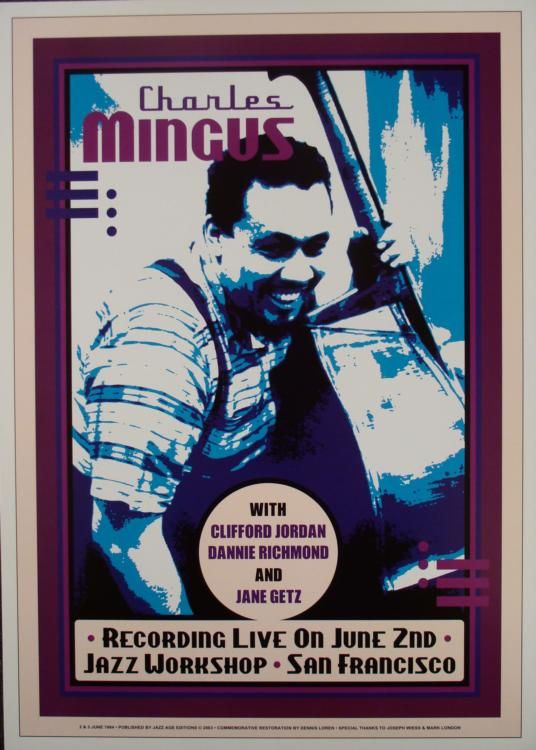 This is a group of 5 reproductions of original concert posters from some of the most famous names in jazz. * Size: 17" x 24Medium: Heavy Poster Stock Condition: Excellent The artists include: Count Basie and his Orchestra, Sweet's Ballroom, Oakland, 1939Charlie Parker Quintet, Birdland, New York, 1953Thelonious Monk, Town Hall, New York, 1959John Coltrane Quintet, The Village Vanguard, New York, 1961Charles Mingus, Jazz Workshop, San Francisco, 1964Please note: These are reproductions, not original concert posters *
