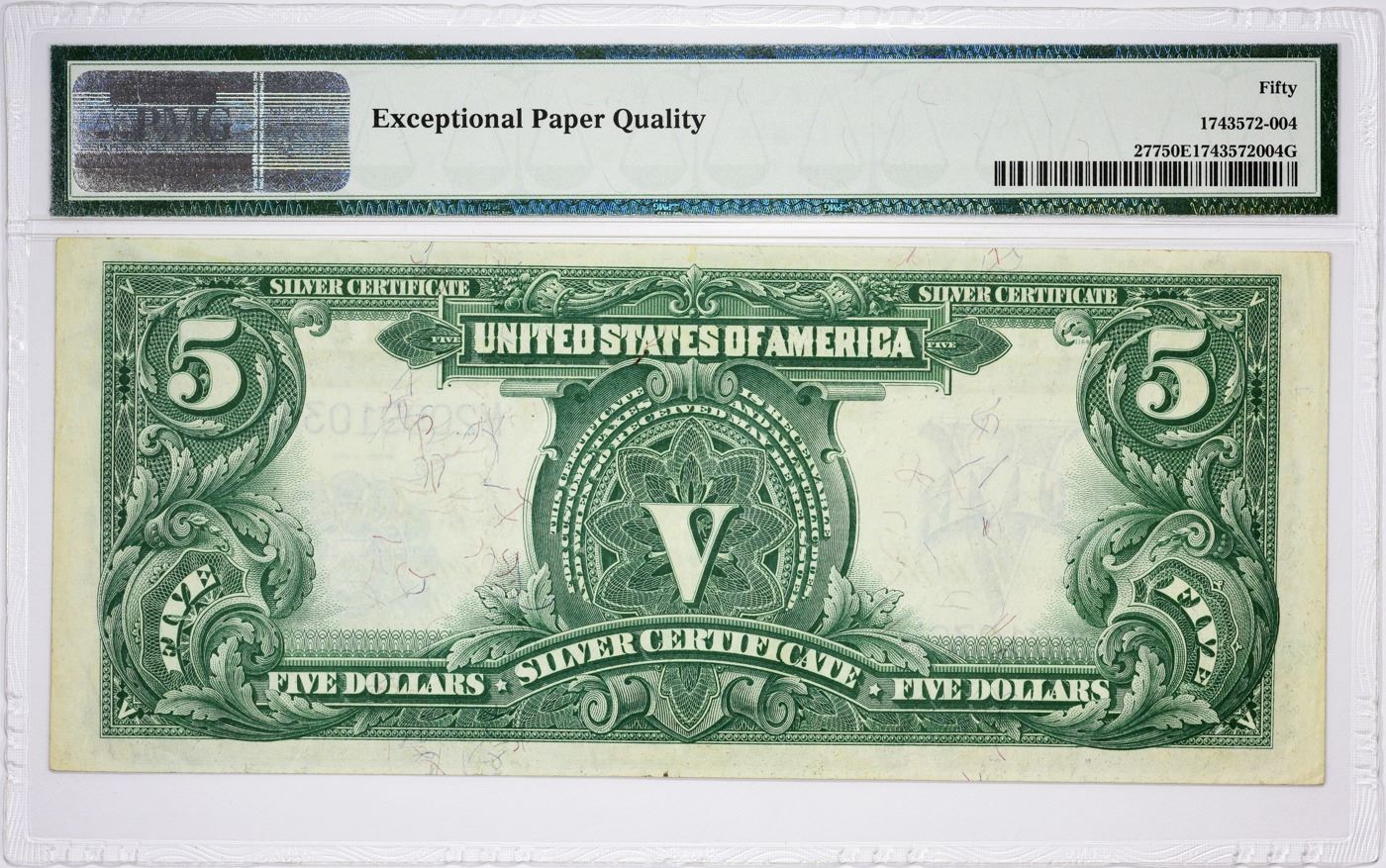 $5 Federal Essay Proof Fr. 277. 1899 $5 Silver Certificate. PMG About Uncirculated 55 EPQ. Just faint circulation on this always desirable "Chief" note that also shows lovely original paper throughout.