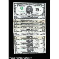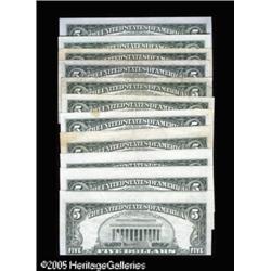 <B>$5 Federal Reserve Notes with Inverted Overprints</B></I><BR>$5 1974 Richmond Gem; Dallas Choice CU<BR>$5 1977 Philadelphia VF; Cleveland VF; Chicago Fine; Kansas City Fine; San Francisco Very Fine<BR>$5 1988 New York (2) AU, VF<BR>$5 1988A Minneapolis AU; San Francisco VF.<BR>Four of the notes also display shift errors so that a portion of the note above shows, while the bottom margin is trimmed in. 11 notes Lot:15501