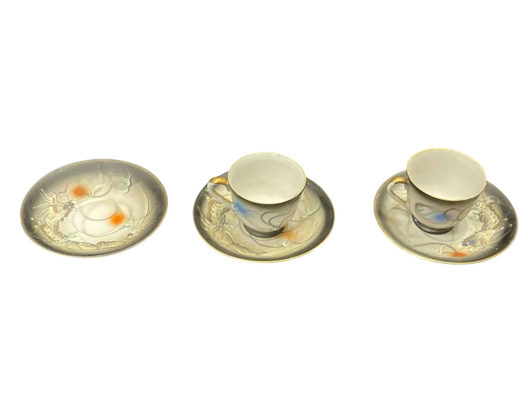 5 Fine China Tea Cups & Saucers With Embossed Chinese Dragons