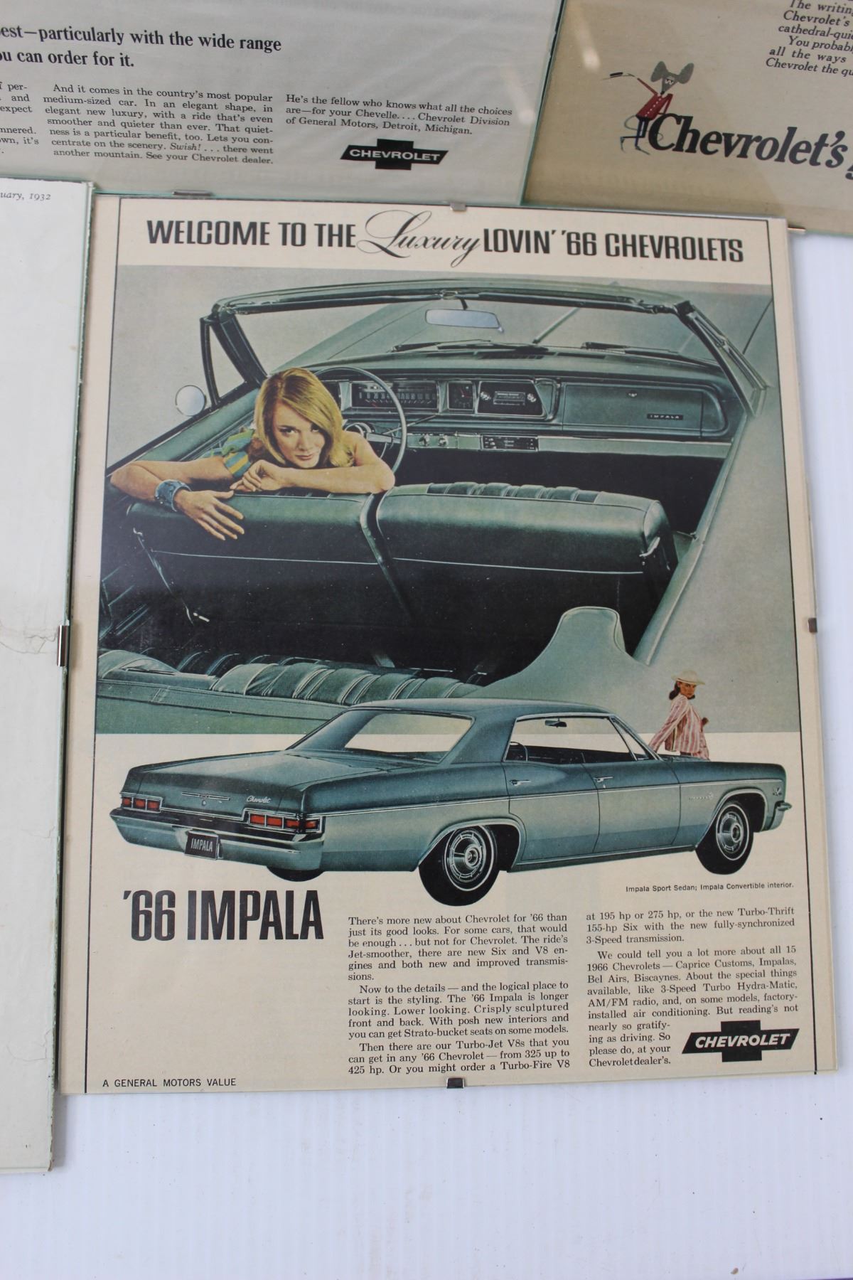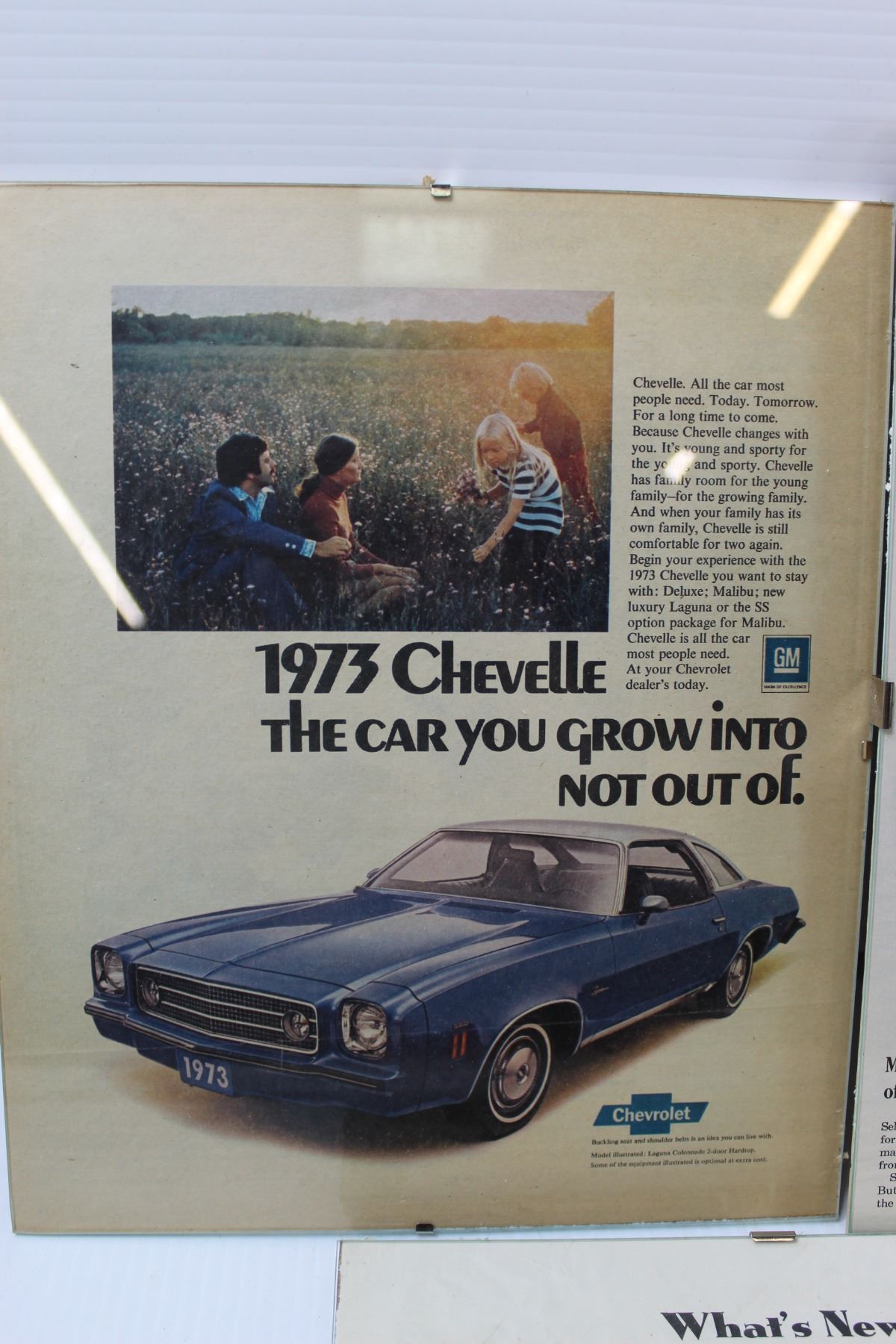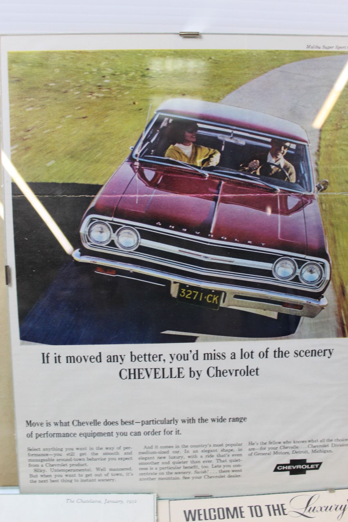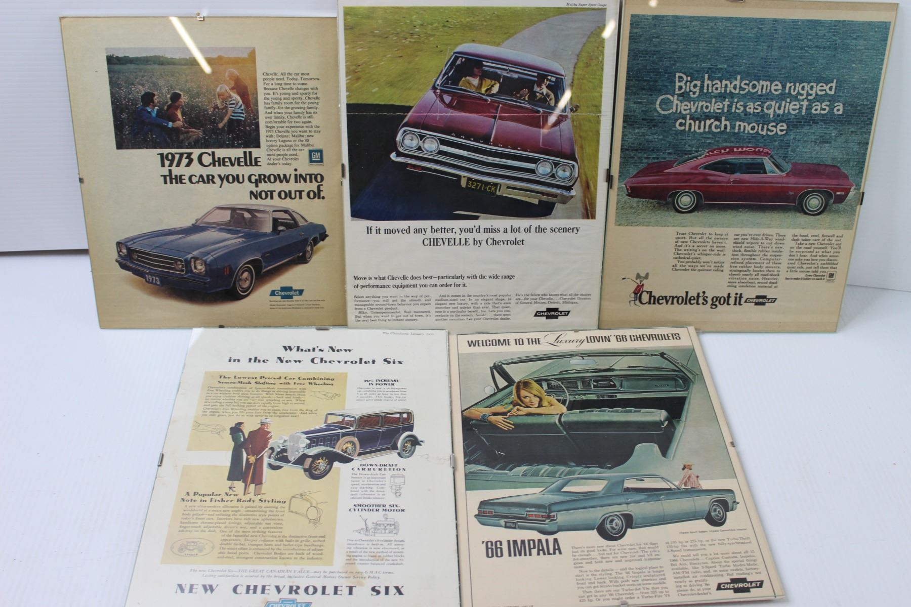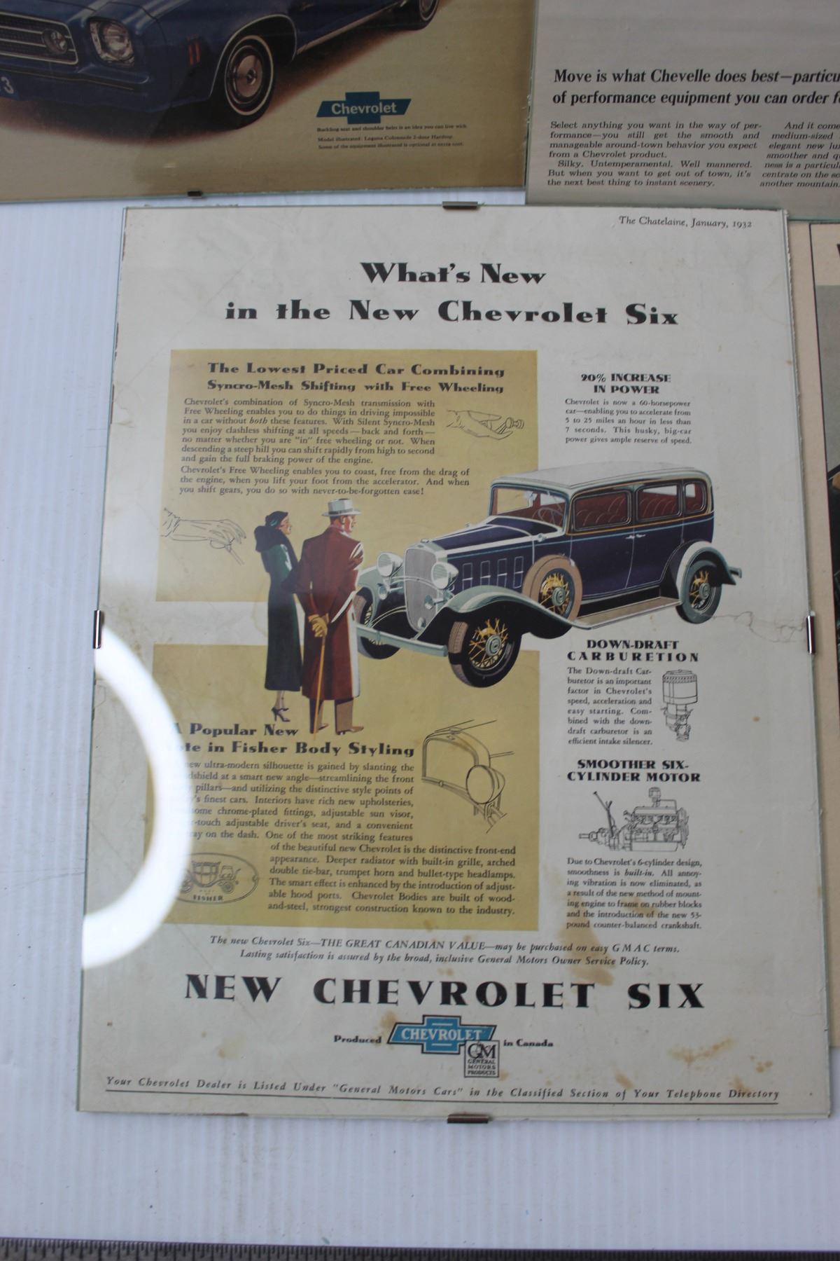 (5) Framed Car Advertisements -- Chevrolet, Chevelle, Impala (13 x 10")
