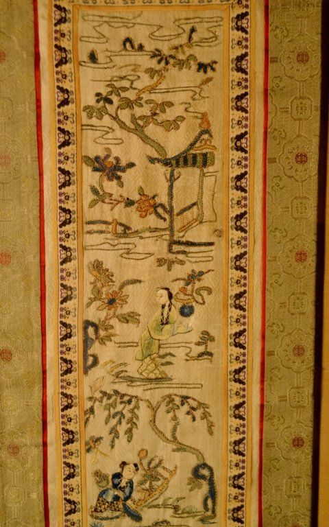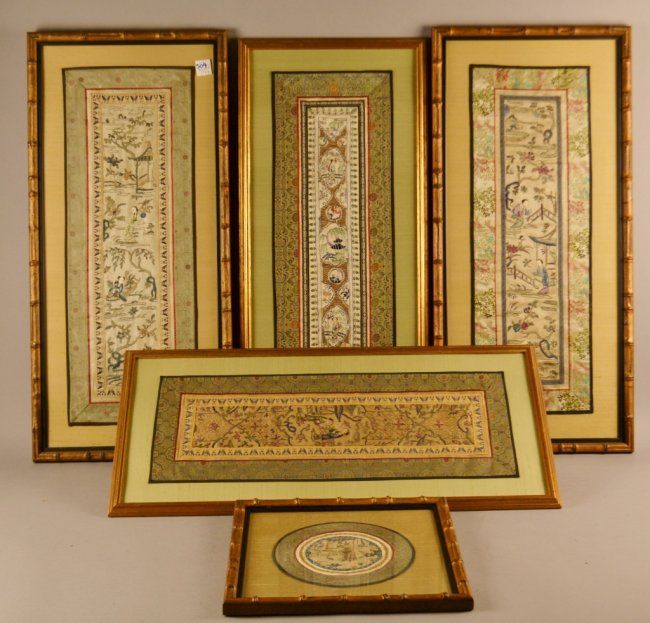 5 Framed Chinese Embroideries Various Sizes-28.5" tall