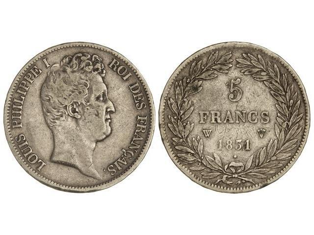 5 Francos. 1831-W. LUIS FELIPE I. LILLE. AR. (Golpecitos y rayitas). C-203.15. MBC-.