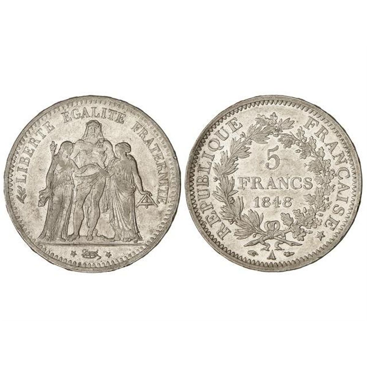 5 Francos. - 1848-A. - II REPÚBLICA. - PARIS. - AR. Hércules. Restos de brillo original. (Pequeños golpecitos). KM-756.1. EBC-/EBC. - -