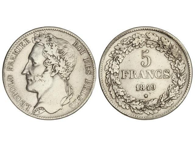 5 Francos. 1849. LEOPOLDO I. AR. KM-3.2. MBC-.