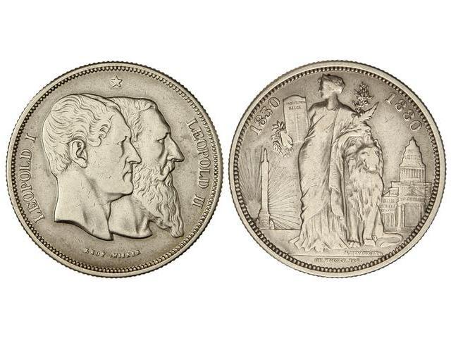 5 Francos. 1880. LEOPOLDO I y II. AR. (Pequeños golpecitos y rayitas). X-M8. MBC/MBC-.