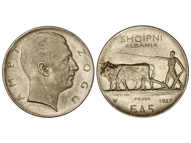 5 Franga Ari. 1927-V. AMET ZOGU. AR. PROVA. KM-Pr22. EBC.