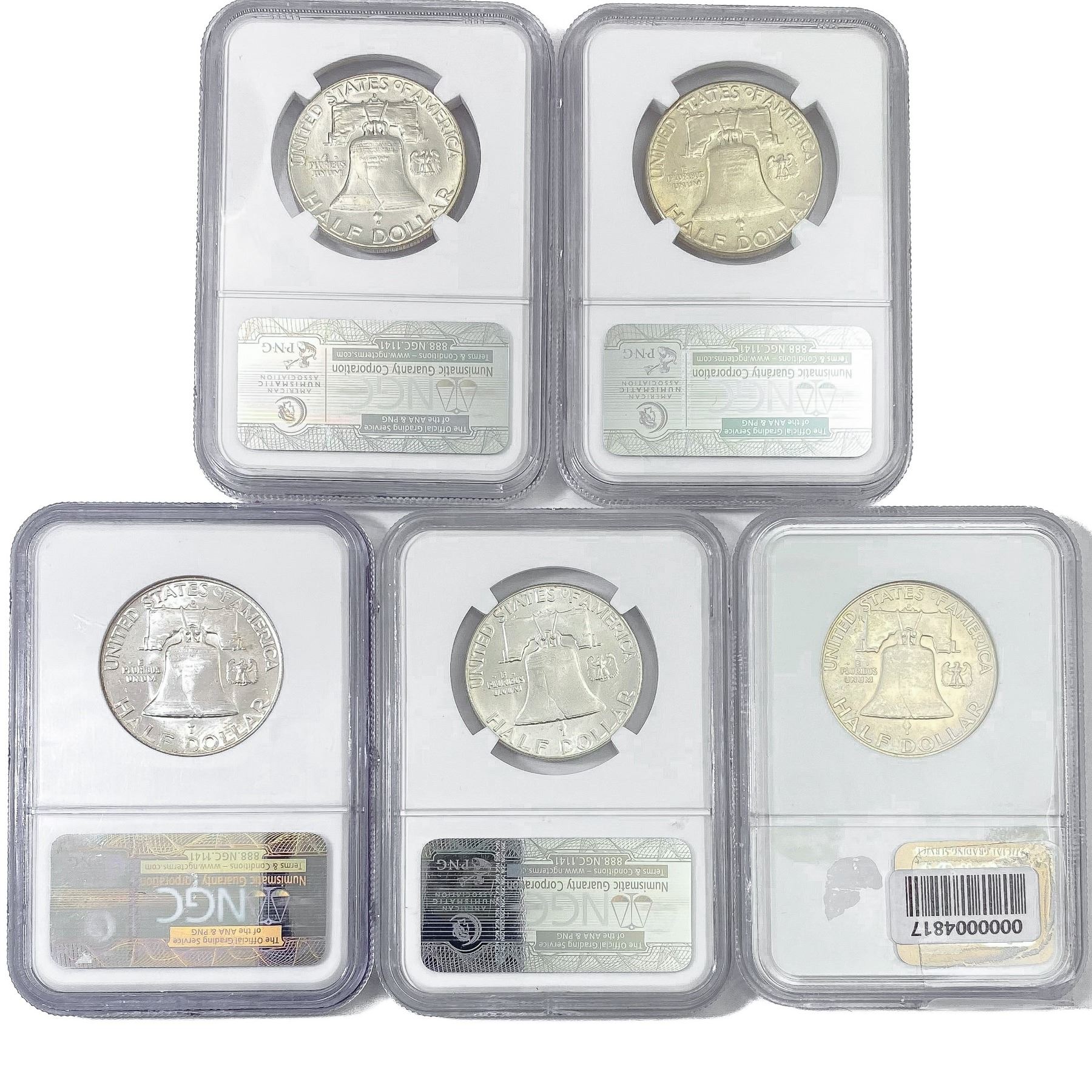 (5) Franklin Half Dollar Set NGC MS64 (1952-D, 195