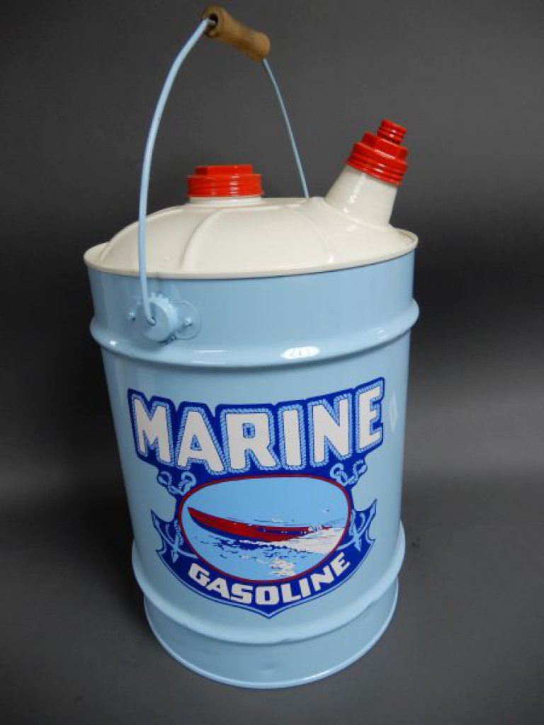 5 GALLON GAS CAN RESTORED TO TEXACO MARINE CORRECT CAPS LOCATION: LOWER RIGHT