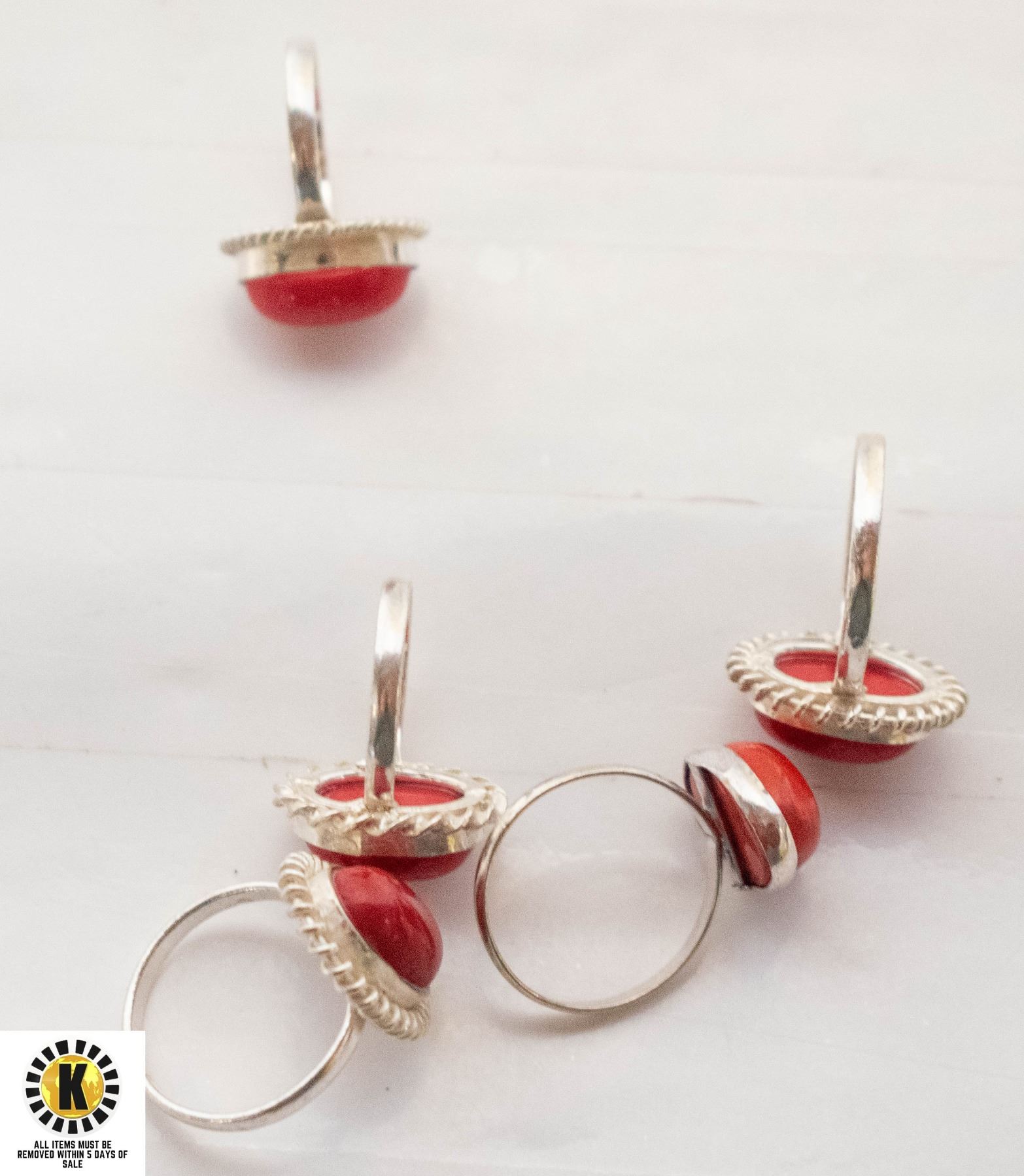 5 GEMSTONE CORAL 925 SILVER PLATED RINGSÿ