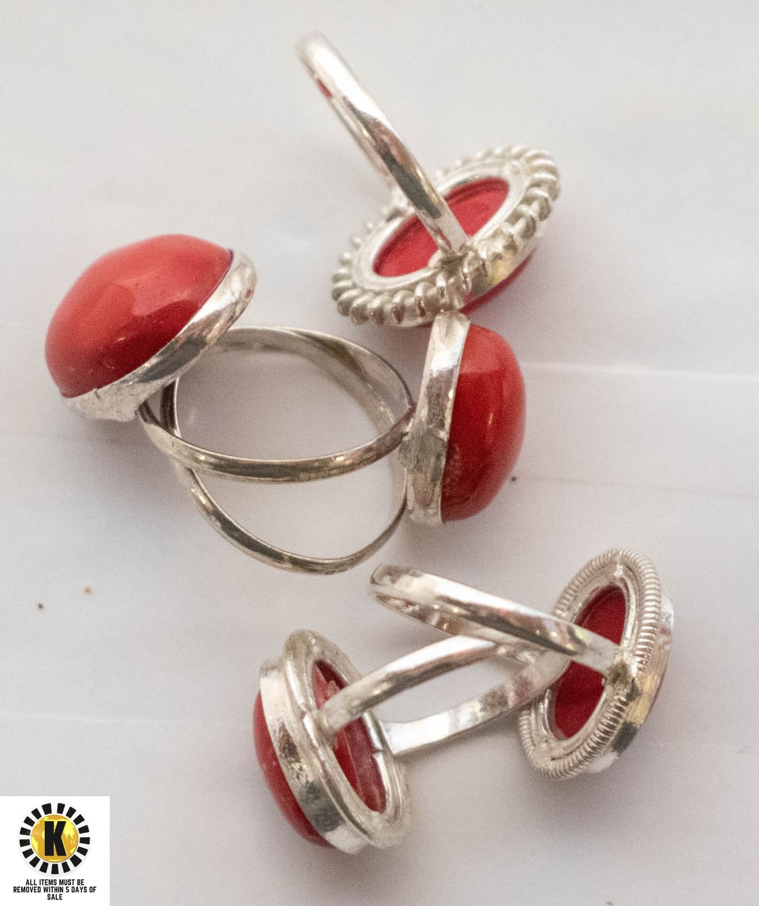 5 GEMSTONE CORAL 925 SILVER PLATED RINGSÿ