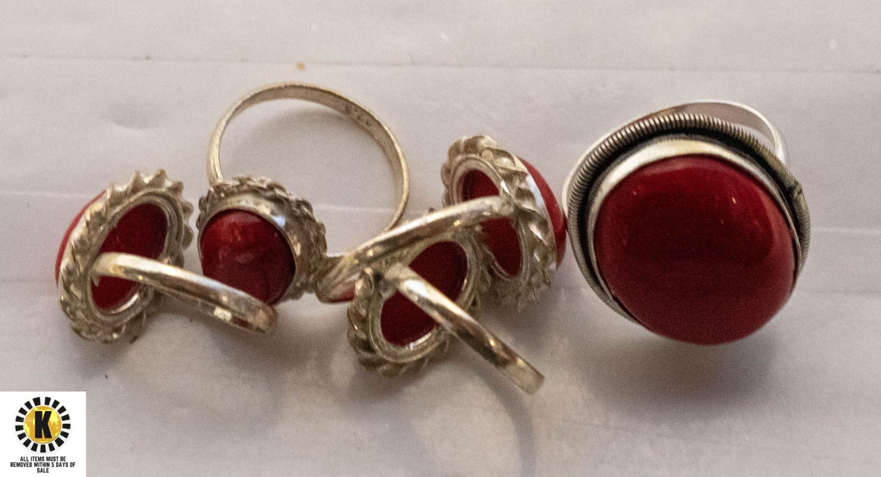 5 GEMSTONE CORAL 925 SILVER PLATED RINGSÿ