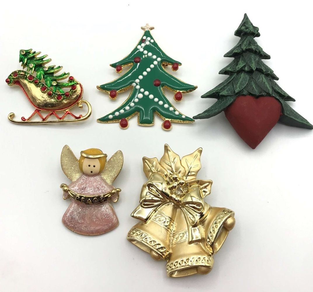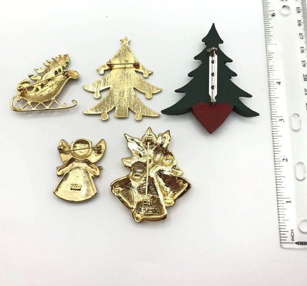(1)MARKED ANI-ENAMEL-RHINESTONES-WOOD-TREES-BELLS-ANGEL