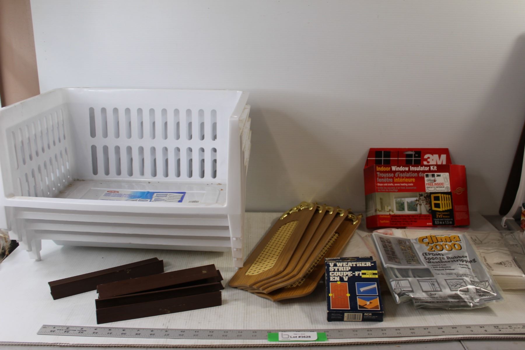 (5) GSC Jumbo Stacking Basket, (5) Ceiling Fan Blades, Indoor Window Insulator Kit, Assorted Home Hardware