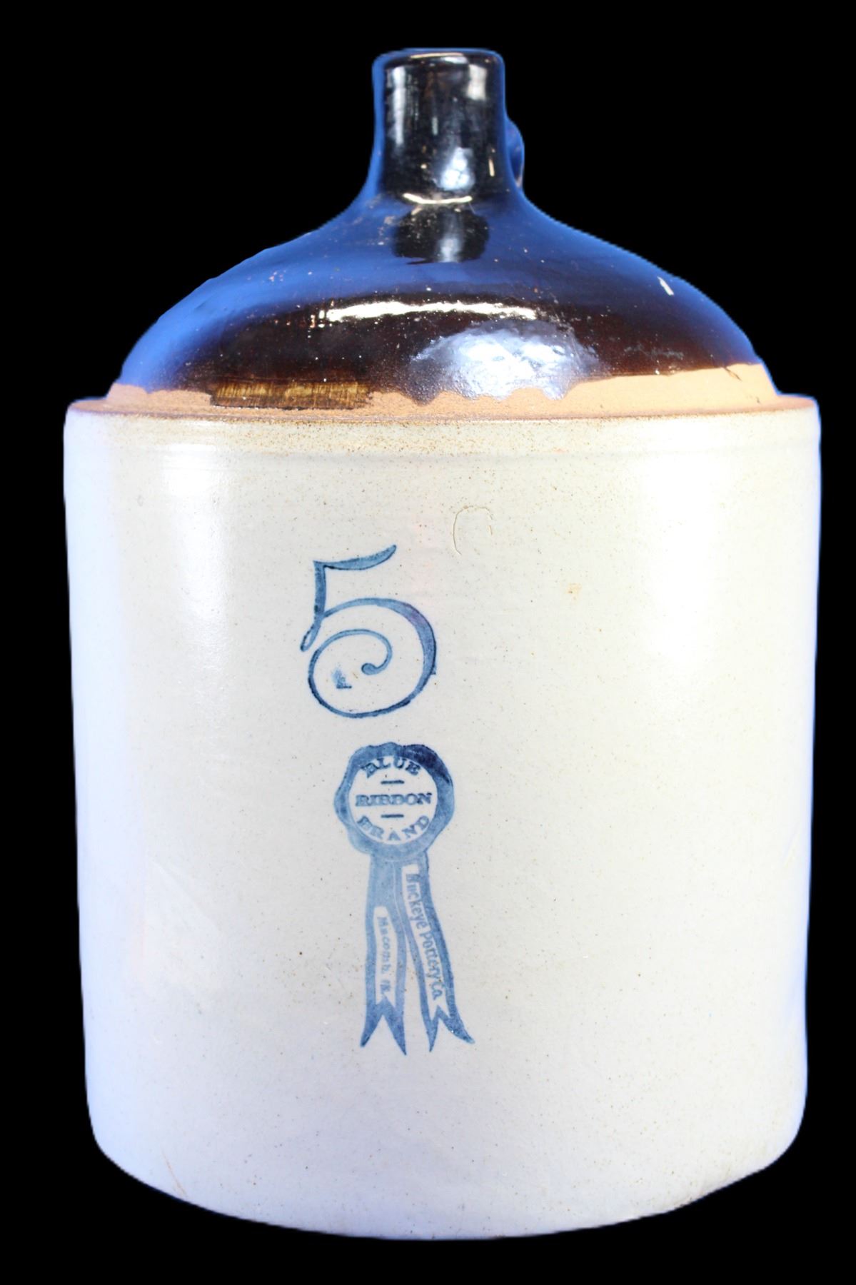 5 Gallon Crock Jug- Buckeye Pottery Co- Blue Ribbon Brand- 1 Small Hairline Crack