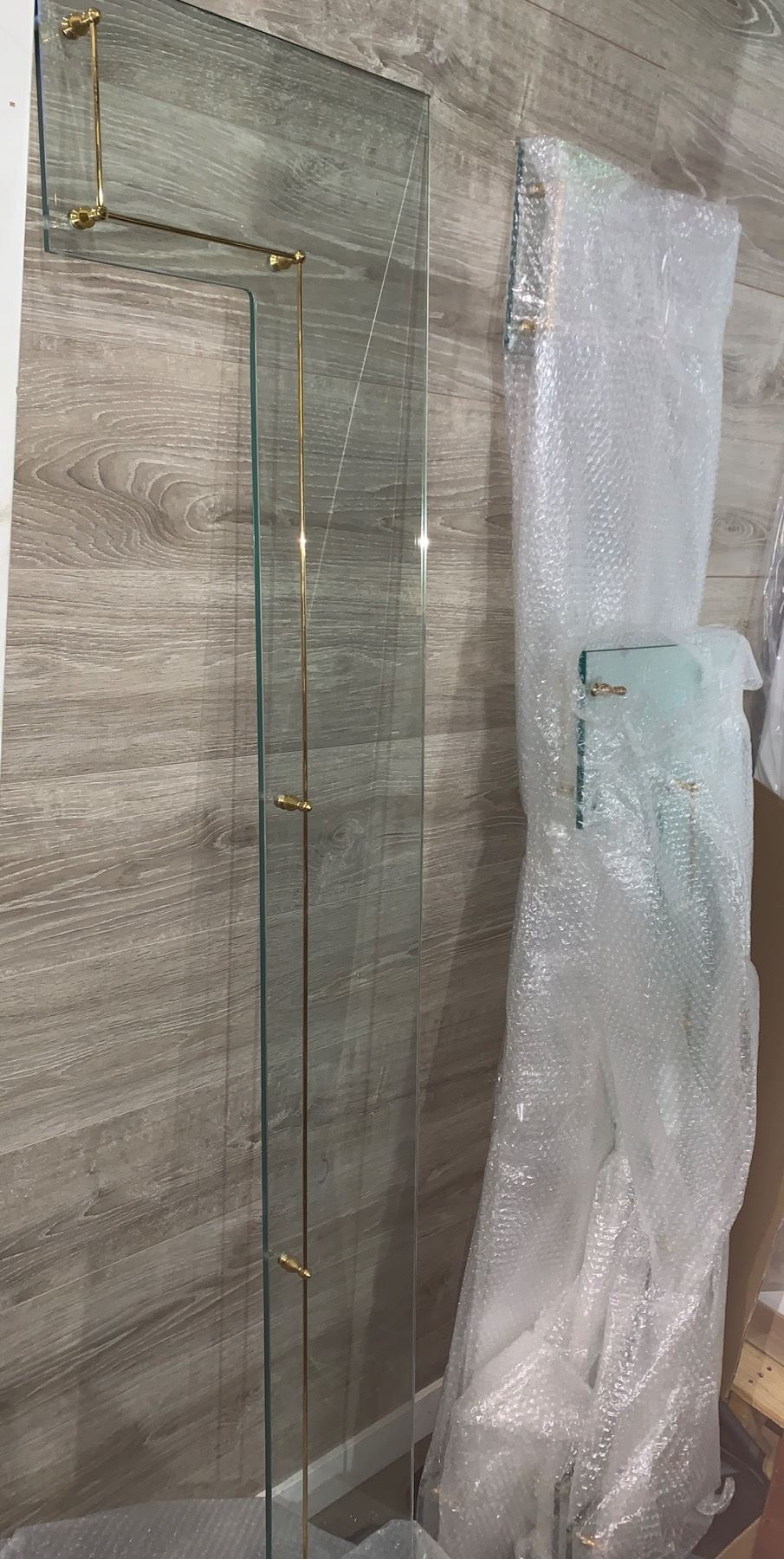 5 Glass & Brass Wall Assorted Wall Shelves w/Box of Brackets