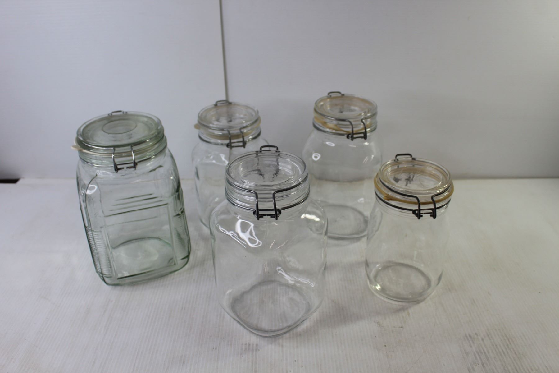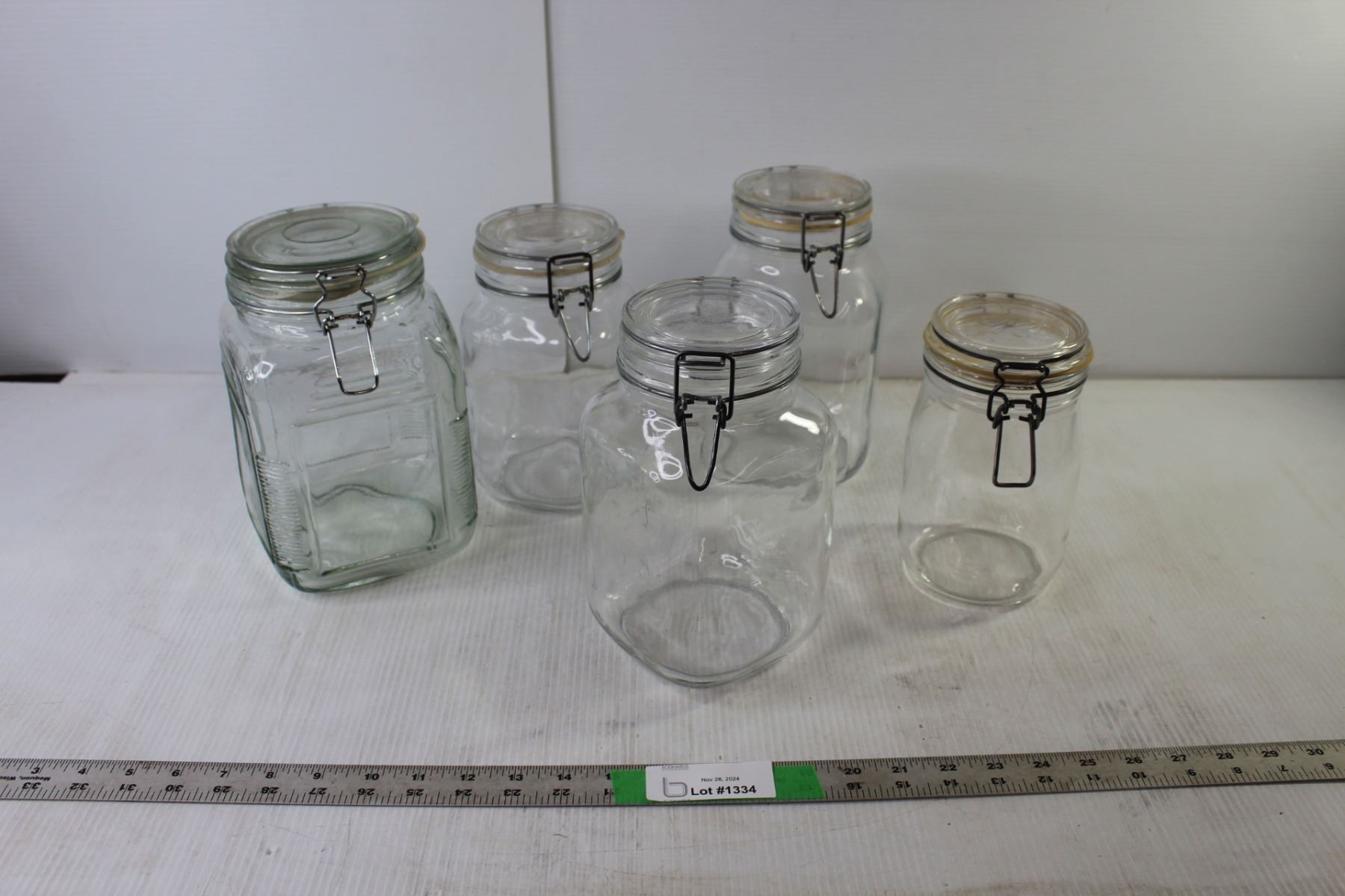 (5) Glass Mason Jars- Assorted Sizes - Wired on Lids
