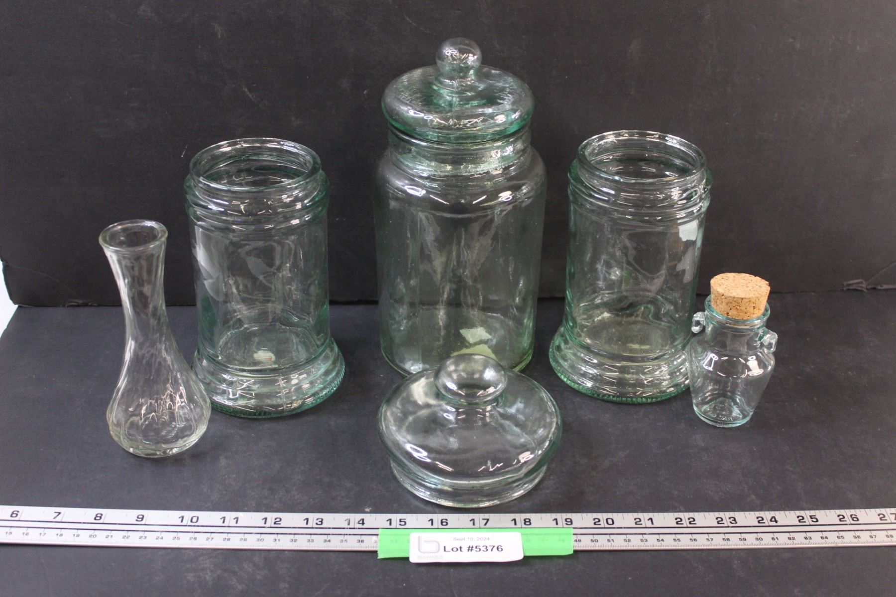 (5) Glass Storage Containers & Vase w/ Extra Lid