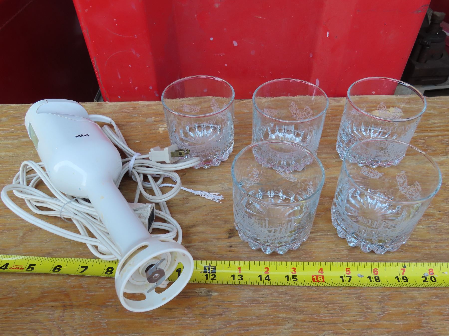 5 Glass cups - Calgary Advertising + Braun Wand Blender