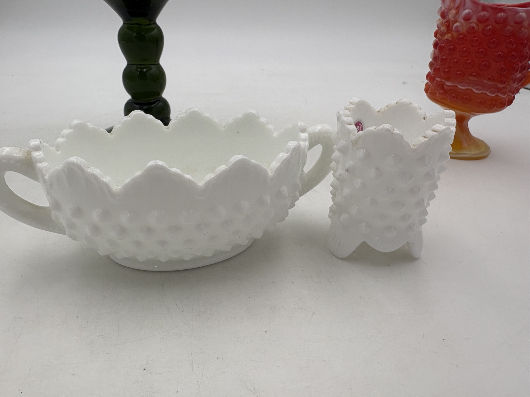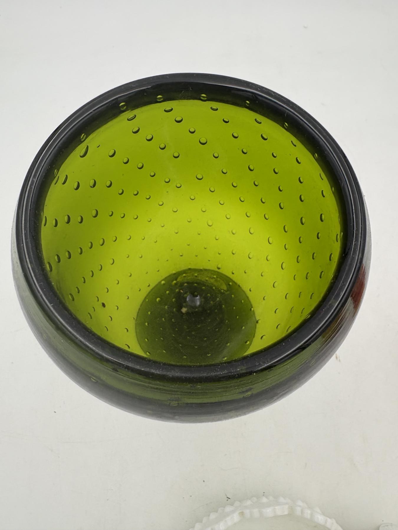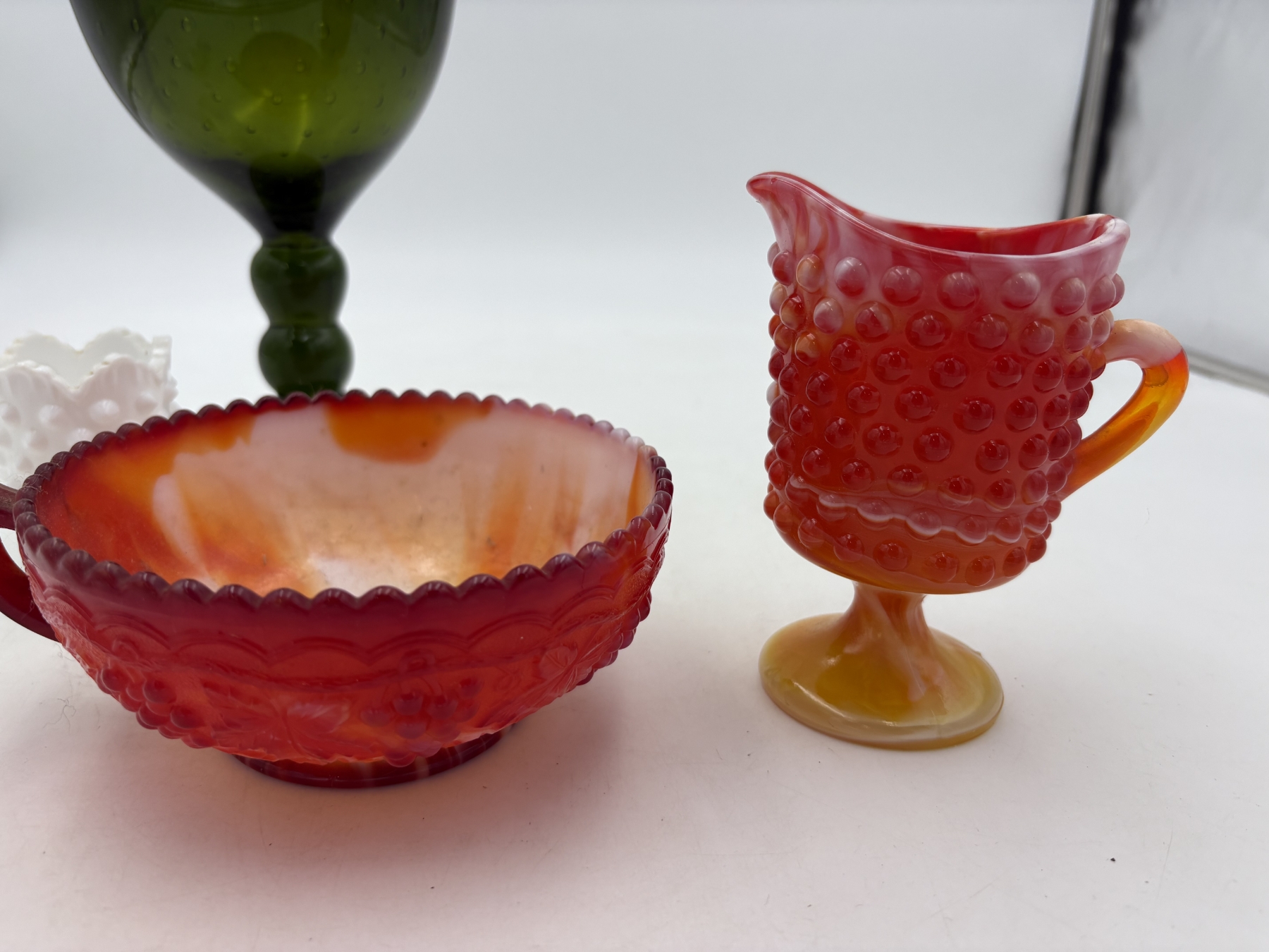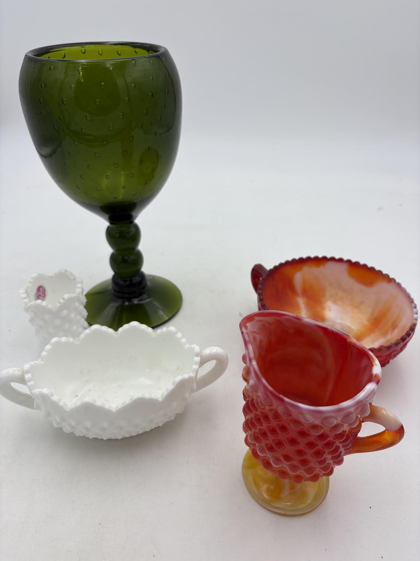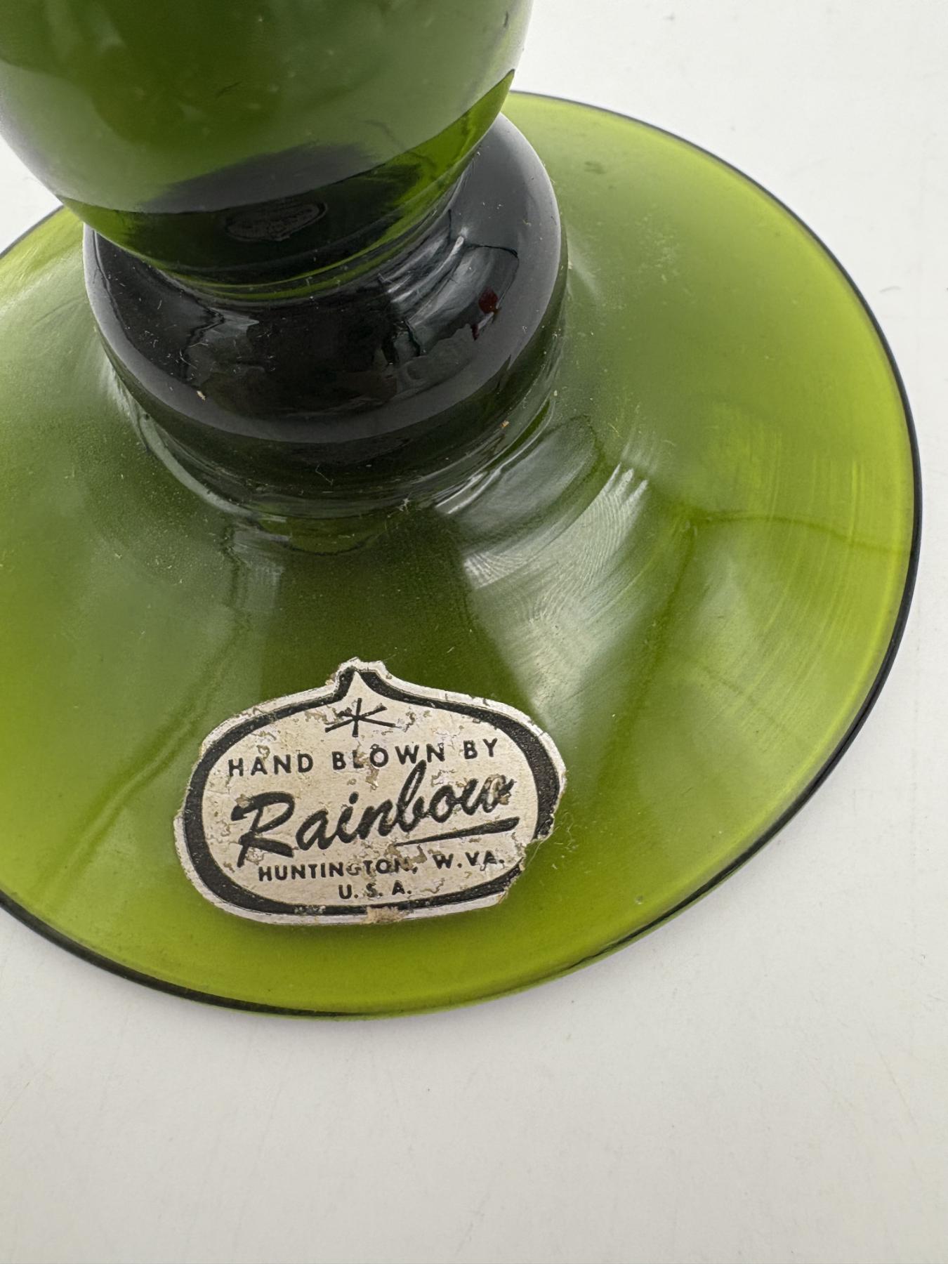5 Glassware Items - 1 Fenton - Green Handblown by Rainbow Goblet